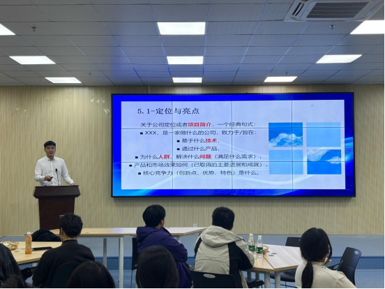 活动现场,各创业团队依次展示项目内容,魏碧慷导师针对每份项目PPT进行逐一细致指导,从赛道定位、痛点挖掘、商业逻辑等多个维度给出专业点评与优化方向,同学们认真聆听记录、积极互动提问,现场学习交流氛围十分热烈。